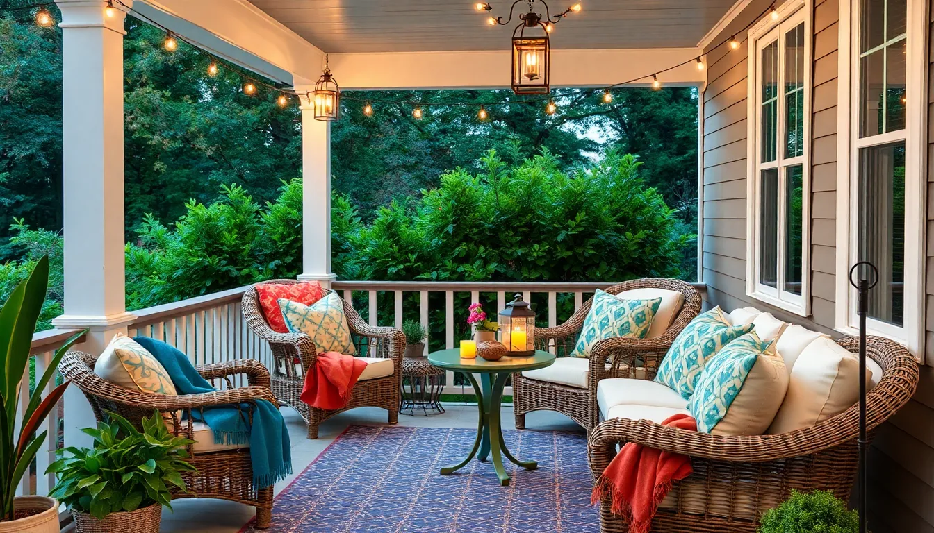 Decorative accents personalize the porch and create a cozy vibe. Artwork reflects personal style and can be displayed on walls or easels. Colorful pottery serves as both decorative and functional elements, housing plants or serving as striking centerpieces. Throw pillows and blankets add comfort while introducing new textures. Incorporating an outdoor-friendly rug can tie the design together, defining seating areas. Lighting features, like lanterns or string lights, also enhance the ambiance, making evenings enjoyable. Choose accents that resonate with individual taste, ensuring the space feels uniquely inviting.