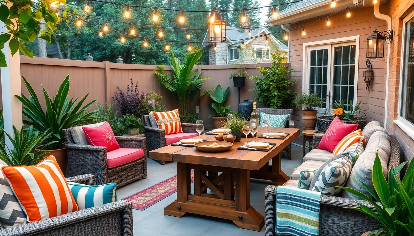 Choose durable materials that withstand outdoor elements. Opt for furniture made from synthetic wicker or aluminum that resist rust and fading. Fabrics like solution-dyed acrylic or polyester offer water and UV resistance, ensuring longevity. Select outdoor rugs made from polypropylene or other weather-resistant fibers for easy maintenance. Incorporate hardscaping elements, such as stone or tile, that resist wear and tear. Prioritize materials that require minimal upkeep while maintaining aesthetics throughout seasons.
